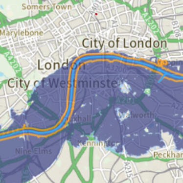 • Flood zone 3b: Land in this area (also shown in dark blue) is predicted to be filled with water when a nearby river floods.